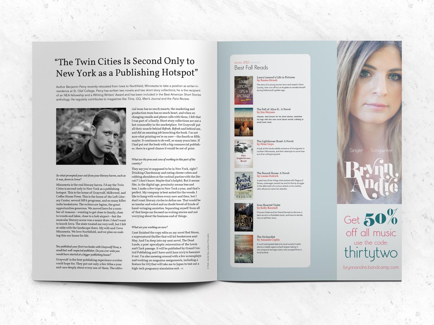 Thirty Two Magazine provided me a dream opportunity to work on a boutique publication from its creation. The Minnesota-centric magazine featured a wide variety of stories, so the challenge was to create unique styles for different kind of content that still fit together into one cohesive design.